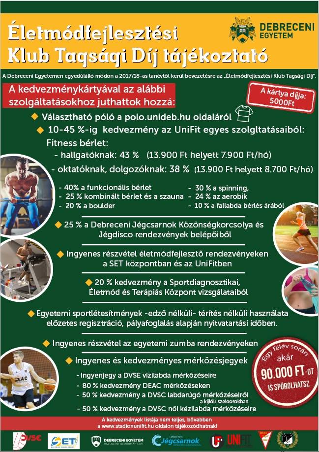 A Debreceni Egyetemen egyedülálló módon a 2017/18-as tanévtől került bevezetésre önkéntes, de mindenki (hallgatók, oktatók, dolgozók) számára felajánlott módon az „Életmódfejlesztési Klub Tagsági Díj”.